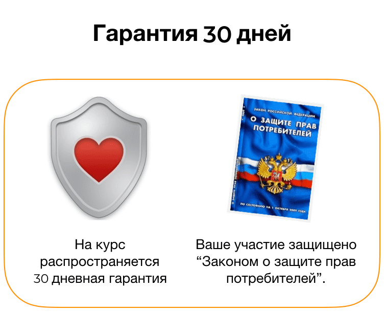 ✅ Вы можете запросить полный возврат в течение 30 дней после старта курса по любой причине.