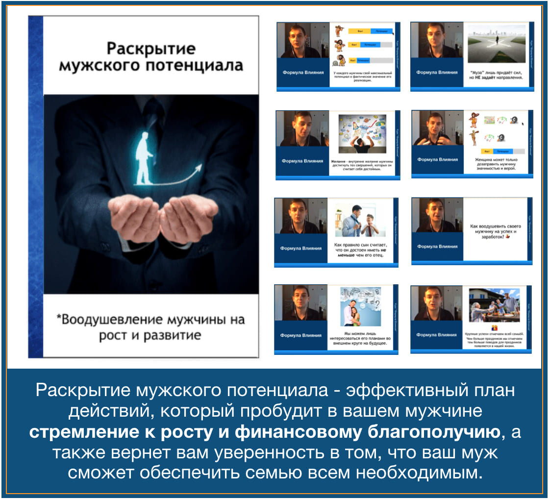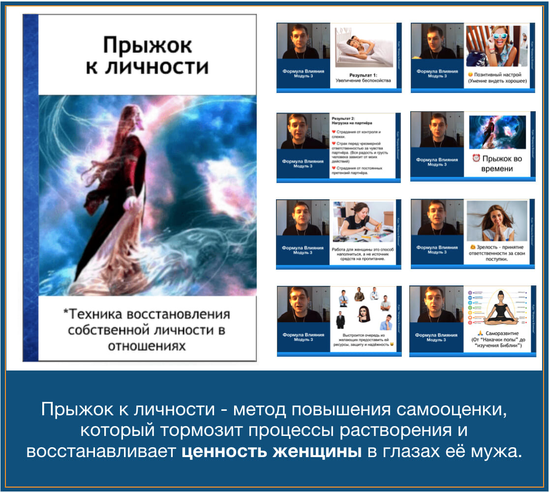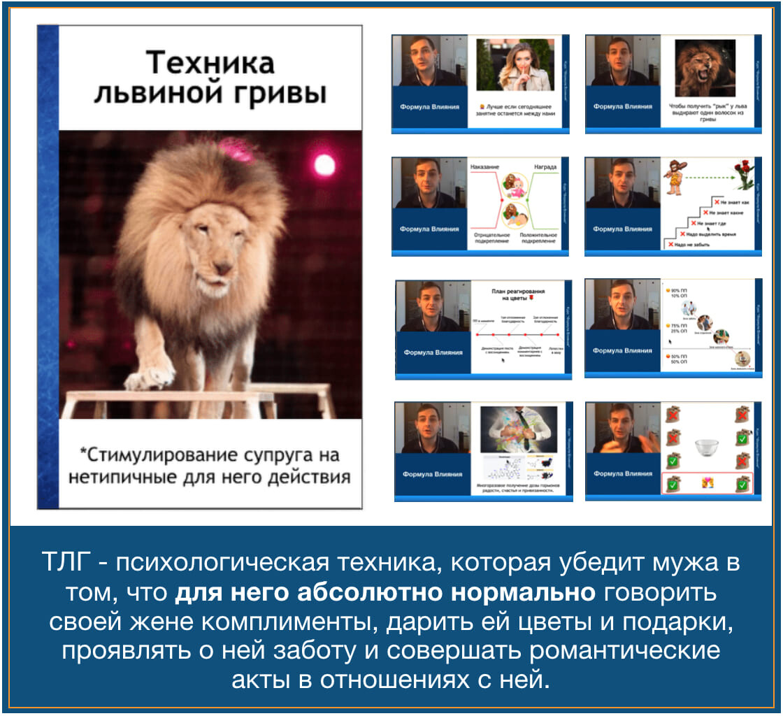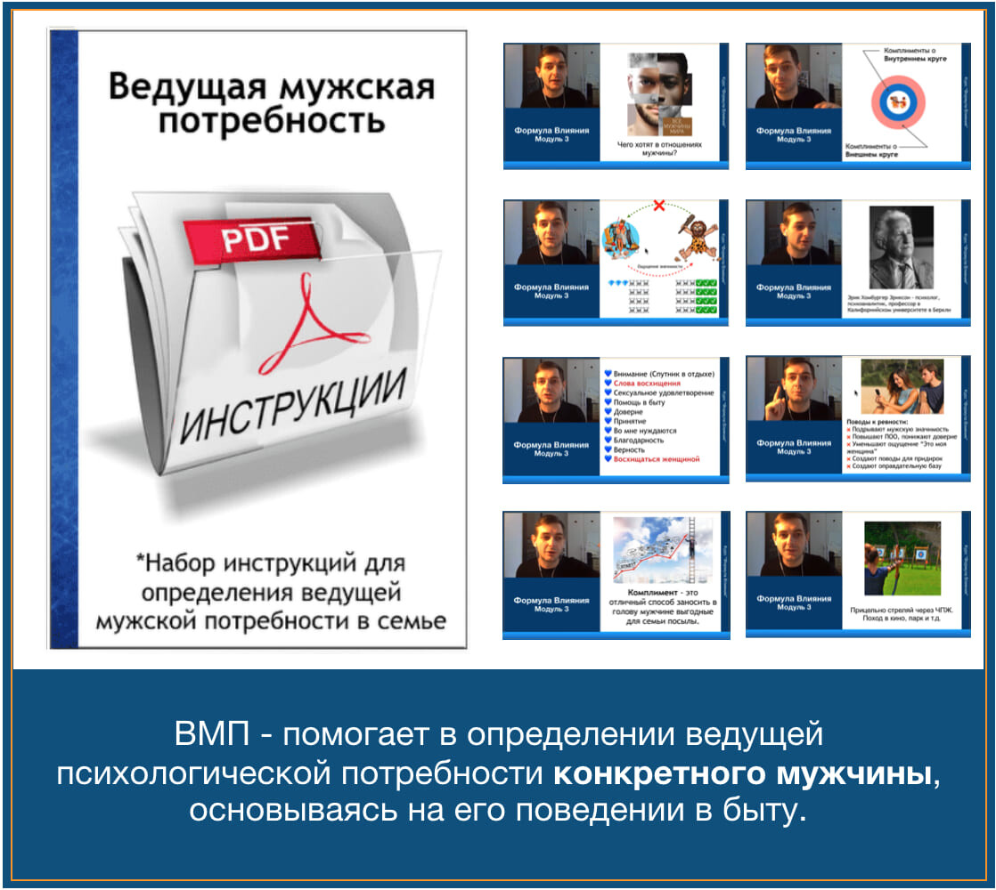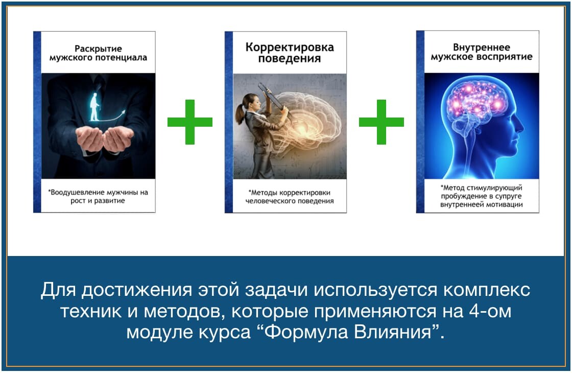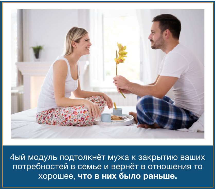 Поэтому на курсе нам нужно будет чуть лучше разобраться в особенностях именно вашего мужа, чтобы усилить эффективность всех будущих техник влияния.