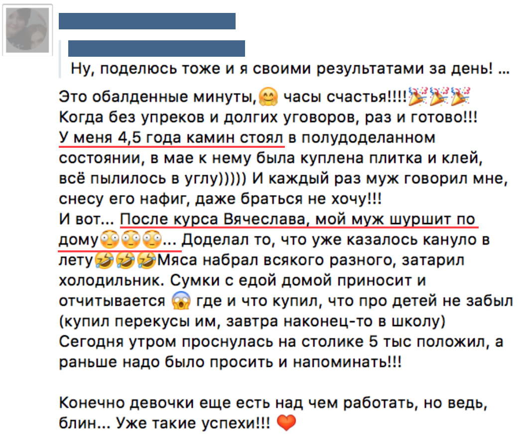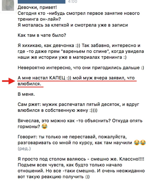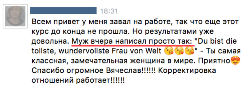 Или вот прекрасный отзыв от участницы, муж которой начал делать просто какие-то фантастические и романтические вещи в их отношениях😊👇