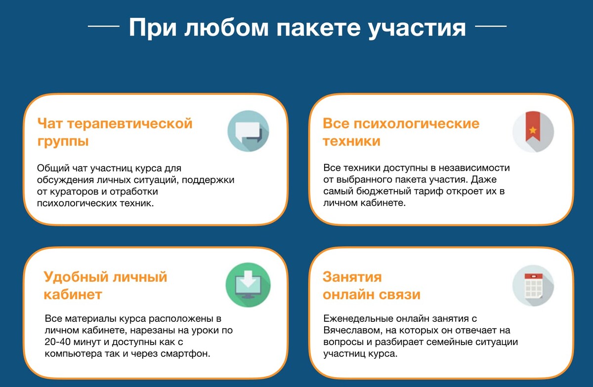 Обратная связь от куратора-психолога на платформе геткурсБессрочный доступ к личному кабинетуЛичная работа напрямую с Вячеславом в телеграмДетальный видео-разбор вашей ситуации Вячеславом